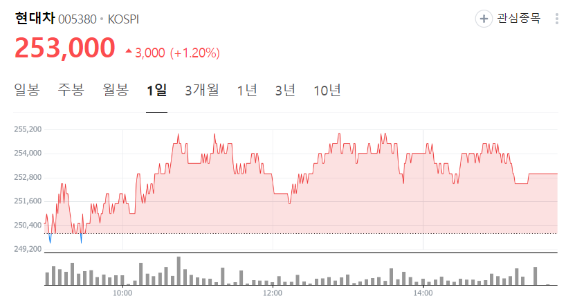 현대차 현재 주가는 253,000원이며 전일 대비 원의 모습을 보이고 있습니다. 현대차의 주주현황을 살펴보면 현대모비스 주주가 전체 지분 29.68%를 소유하고 있습니다. 현대차는 자동차 기업으로 장중 기준으로 주가는 253,000원 입니다. 현대차의 시가 총액은 53조5175억 원이며 발행 주식수는 211,531,506주 입니다. 외국인 보유 비중은 37.64% 이며 장중 거래량은 1,210,240원 을 기록했습니다. 매출액은 1,626,636억 원을 달성했습니다. EPS는 42,853원이며 현대차 주식 배당수익률은 5.60% 입니다.